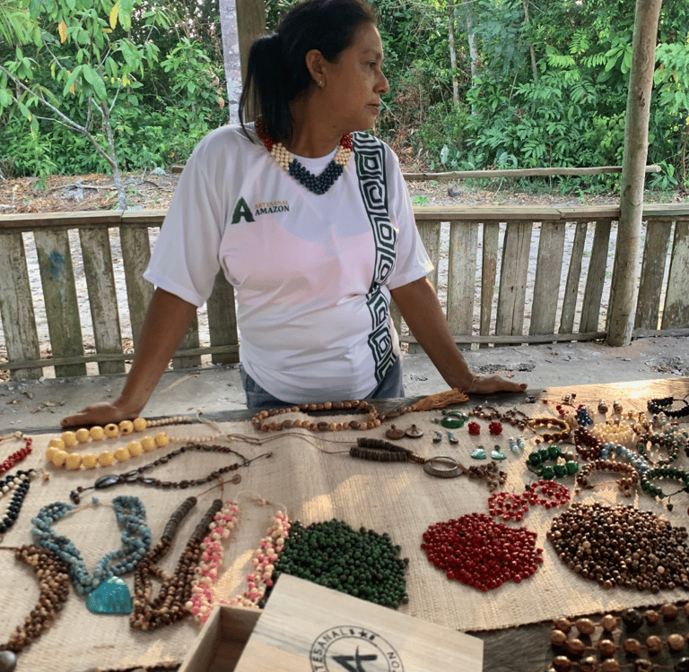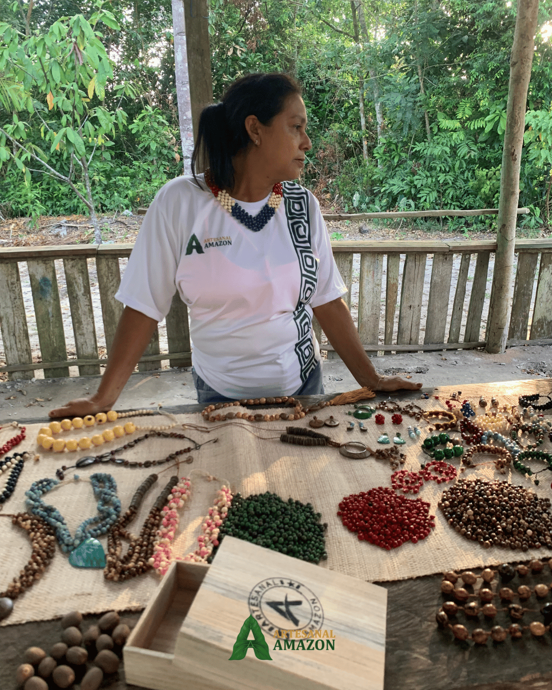 Artesanal Amazon celebrates Amazonian culture by offering handmade biojewelry made by local artisans using natural materials and promoting conscious fashion and female empowerment.