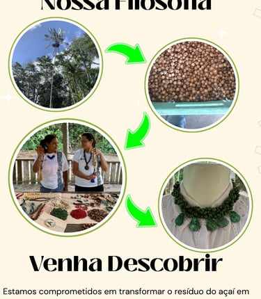 Valorizamos a sustentabilidade, transformando resíduos do açaí em arte. Promovemos o empoderamento feminino, dando voz e renda às mulheres artesãs. Preservamos a cultura amazônica, levando sua essência ao mundo. Trabalhamos com qualidade, originalidade e responsabilidade social, criando peças únicas que conectam beleza e propósito.