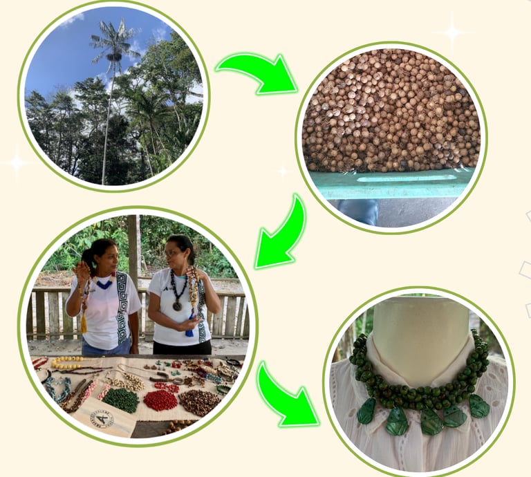 Nosso trabalho incentiva artesãs de comunidades tradicionais na produção de biojoias exclusivas, principalmente a partir do caroço de açaí e outras sementes da rica biodiversidade amazônica. Essa matéria-prima, que nas mãos habilidosas das mulheres da comunidade Santa Maria do Tauerazinho de Beja, em Abaetetuba-PA, Amazônia, Brasil, se transforma em artesanatos únicos, repletos de identidade cultural.